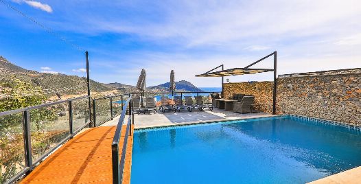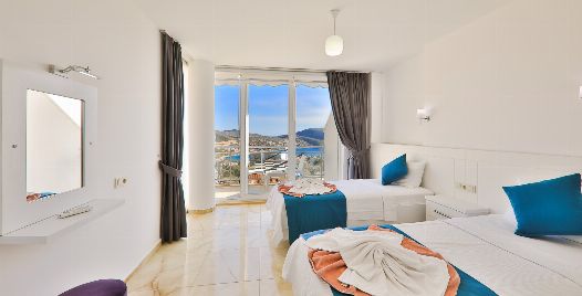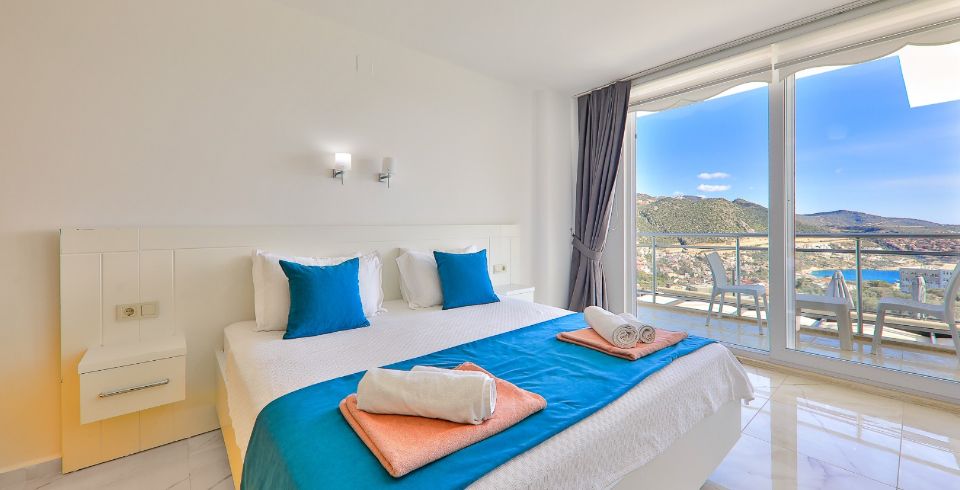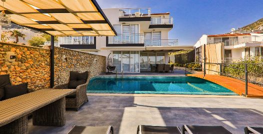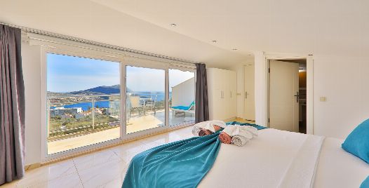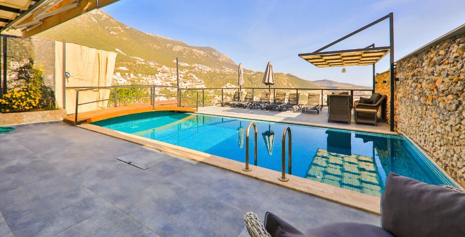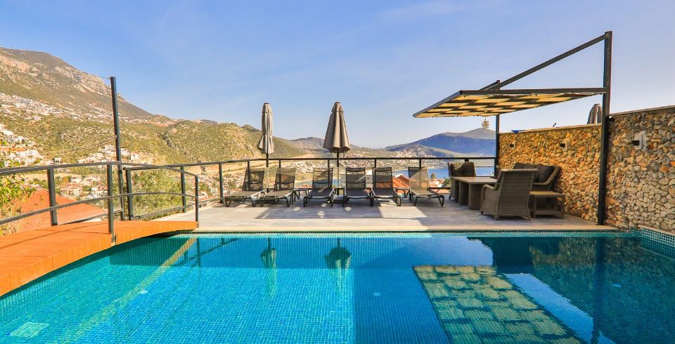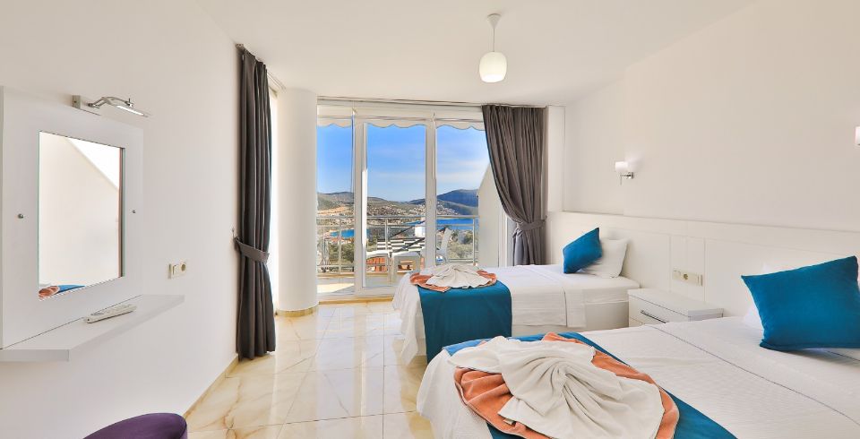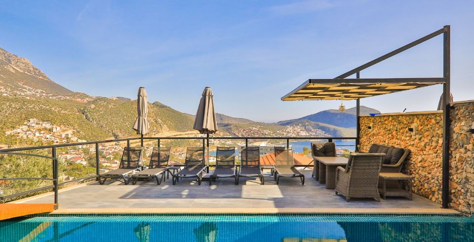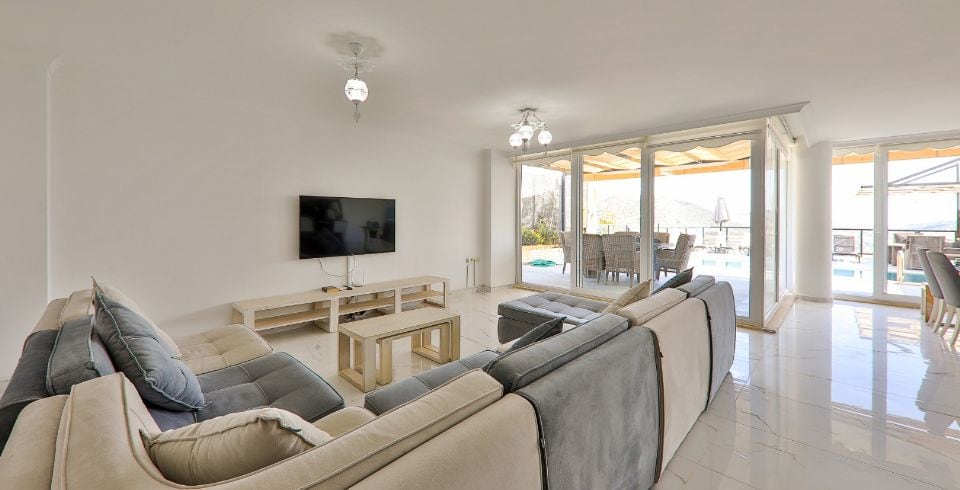 Villa Royal 1, Kalkan’ın Ortaalan bölgesinde deniz manzarasına sahip, zarif ve konfor odaklı bir villadır. Üç yatak odası ve üç banyosu ile altı kişiye kadar konaklama imkânı sunar. Her oda en-suite banyoya sahiptir ve bazı odalarda çift kişilik jakuzi bulunmaktadır. Açık plan salon ve mutfak, geniş cam cephelerle dış mekâna açılır; bu sayede iç alanlarla havuz terası arasında akıcı bir geçiş sağlanır.