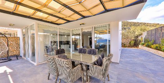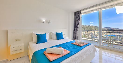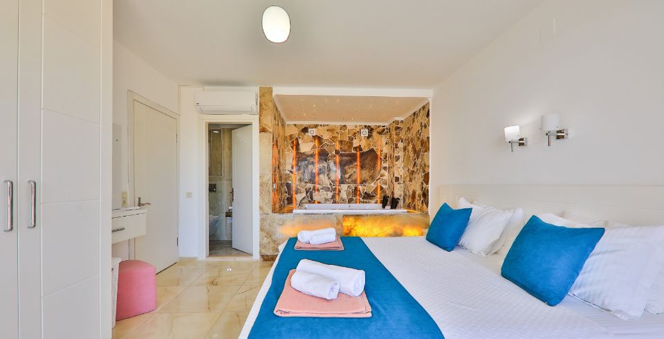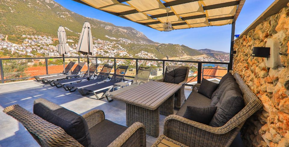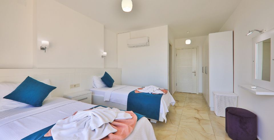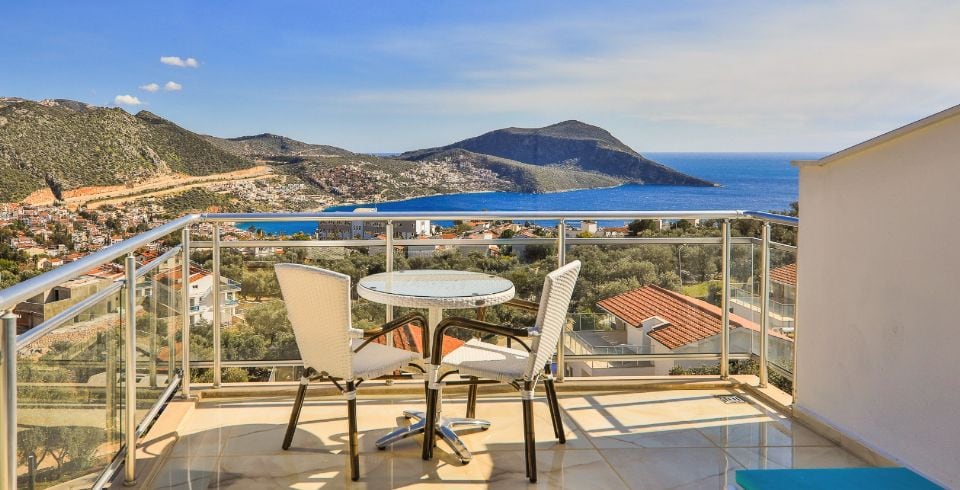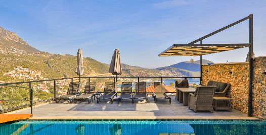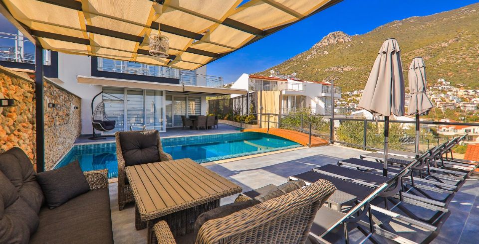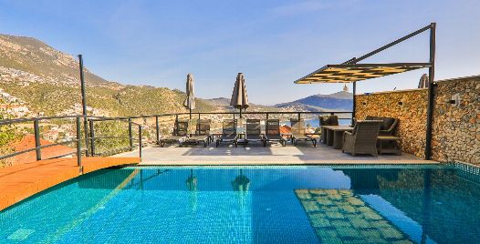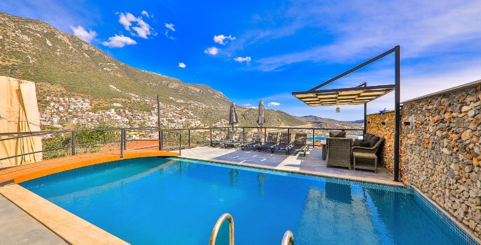 Villa Royal 1, Kalkan’ın Ortaalan bölgesinde deniz manzarasına sahip, zarif ve konfor odaklı bir villadır. Üç yatak odası ve üç banyosu ile altı kişiye kadar konaklama imkânı sunar. Her oda en-suite banyoya sahiptir ve bazı odalarda çift kişilik jakuzi bulunmaktadır. Açık plan salon ve mutfak, geniş cam cephelerle dış mekâna açılır; bu sayede iç alanlarla havuz terası arasında akıcı bir geçiş sağlanır.