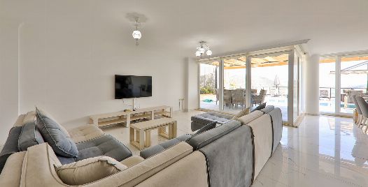 Salon: Villamızın Salonunda Oturma grubu , televizyon , uydu alıcısı , ütü , ütü masası , elektrik süpürgesi , yemek masası ve sandalyeler bulunmaktadır.