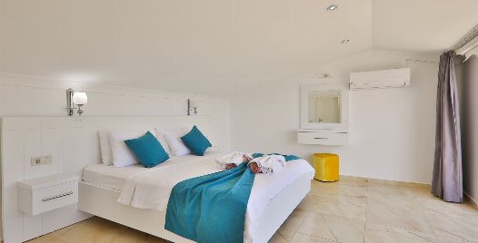 1. Yatak odası: Suit oda , 1 adet çift kişilik yatak , elbise dolabı makyaj masası , komodin , klima , banyo ve tuvalet bulunmaktadır. Çatı katına çıkış bulunmaktadır.