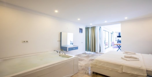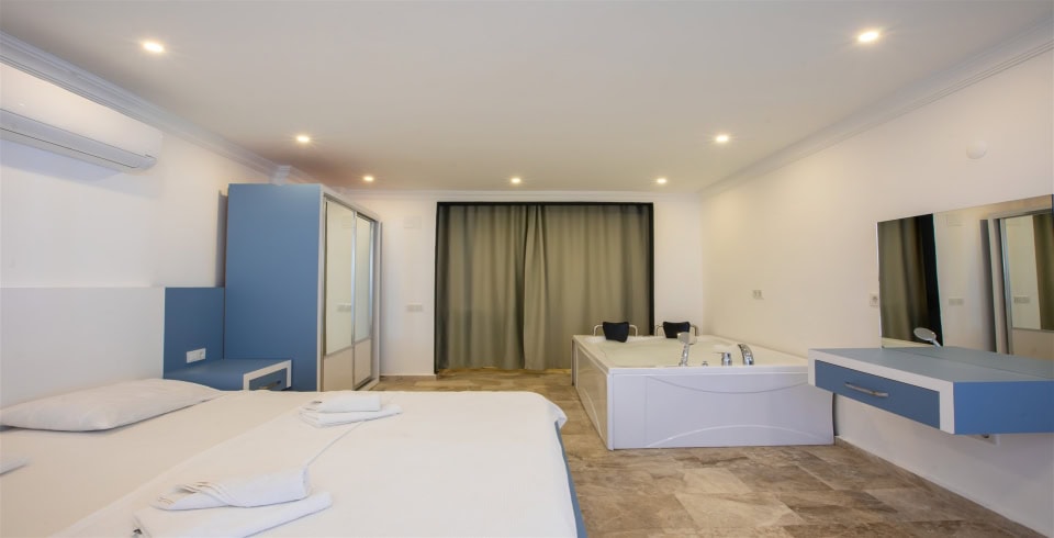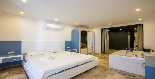 1. Yatak Odası : 1 adet çift kişilik yatak, klima,Jakuzi, komodin, elbise dolabı, makyaj masası, banyo ve lavabo bulunmaktadır.