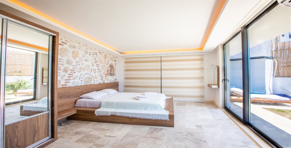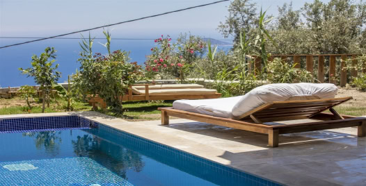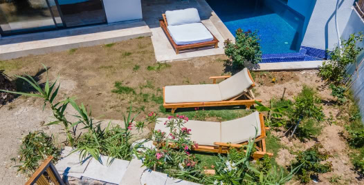 Havuz ve Bahçe :Deniz manzaralı özel yüzme havuzu, şezlong, şemsiye, bahçe yemek masası ve barbekü bulunmaktadır.