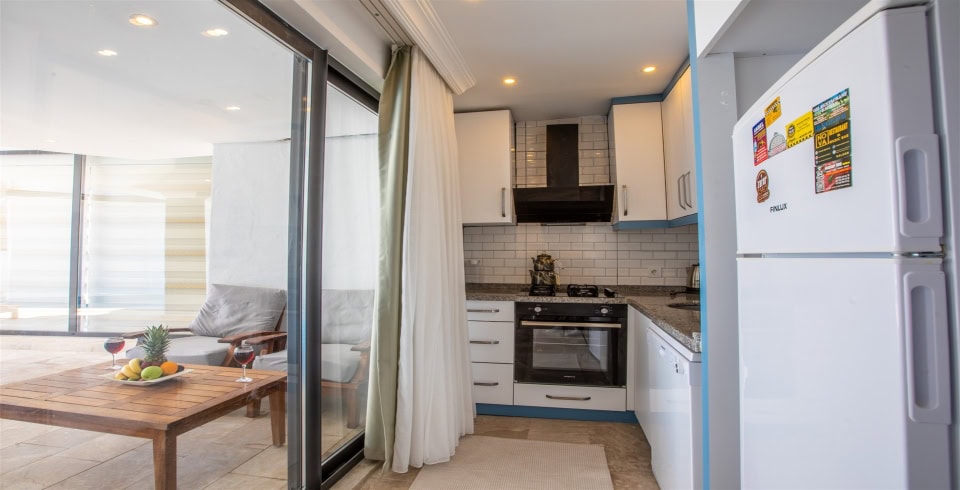 Mutfak : Villamızın geniş Amerikan mutfağı ile sizlere kendi evinizin mutfağı gibi hissettirecek. Ayrıca mutfakta klima, bulaşık makinası, buzdolabı, çamaşır makinası, mikrodalga fırın, Su ısıtıcısı, fırın, 4`lü ocak seti ,yemek masası ile tava tencere vb. mutfak araç gereçlerini kullanma fırsatını sizlere sunuyoruz.