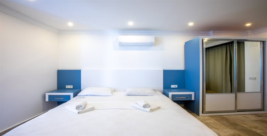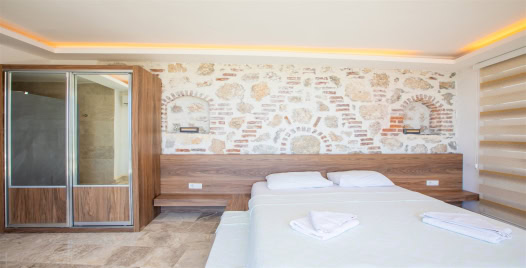 2. Yatak Odası : 1 adet çift kişilik yatak, klima, elbise dolabı, makyaj masası, komodin, banyo ve lavabo bulunmaktadır.