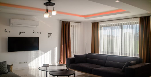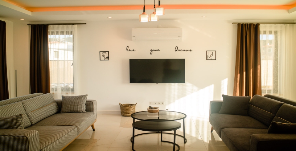 Salon : Villa salonunda oturma grubu, TV, internet, klima, sehpa bulunmaktadır.