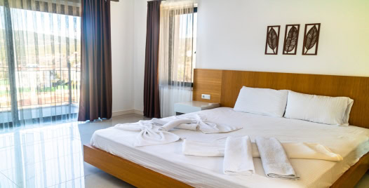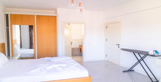 1. Yatak Odası : Çift kişilik yatak, klima, komodin, makyaj masası, balkon, banyo ve lavabo bulunmaktadır.