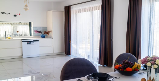 Mutfak : Buzdolabı, çamaşır makinesi, 4’lü ocak, çatal-bıçak takımı, tencere-tava takımı, yemek masası, bulaşık makinesi bulunmaktadır.