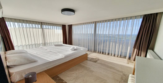 4. Yatak Odası: 1 adet çift kişilik yatak, elbise dolabı, makyaj masası, balkon, banyo, tuvalet ve klima yer almaktadır.