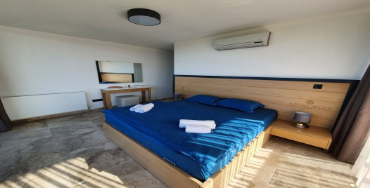 1. Yatak Odası: 1 adet çift kişilik yatak, elbise dolabı, makyaj masası, klima ve banyo-tuvalet yer almaktadır.
