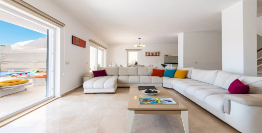 Salon: Villa salonunda konforlu oturma grubu, klima, TV, internet, uydu alıcı, yemek masası, sehpa bulunmaktadır.