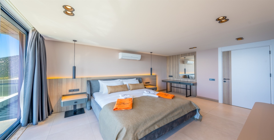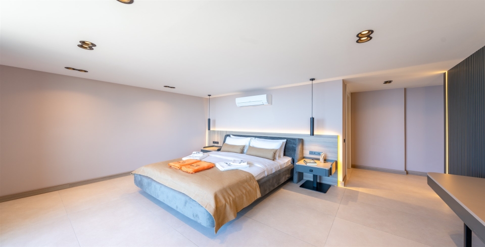 3. Yatak Odası : 1 adet çift kişilik yatak, klima, komodin, elbise dolabı, makyaj masası, deniz manzaralı balkon, banyo ve tuvalet bulunmaktadır.