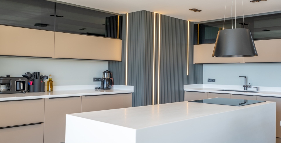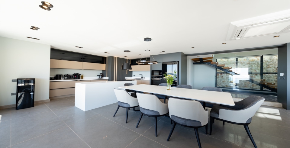 Mutfak : Modern Amerikan mutfak içerisinde yemek masası, buzdolabı, bulaşık makinası, fırın, ocak, mikrodalga fırın, Türk ve filtre kahve makinası, ekmek kızartma makinası, kettle, yemek takımları, çatal ve bıçak takımları, tencere ve tava takımları, bardaklar bulunmaktadır.
