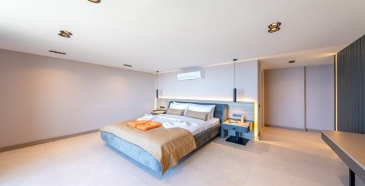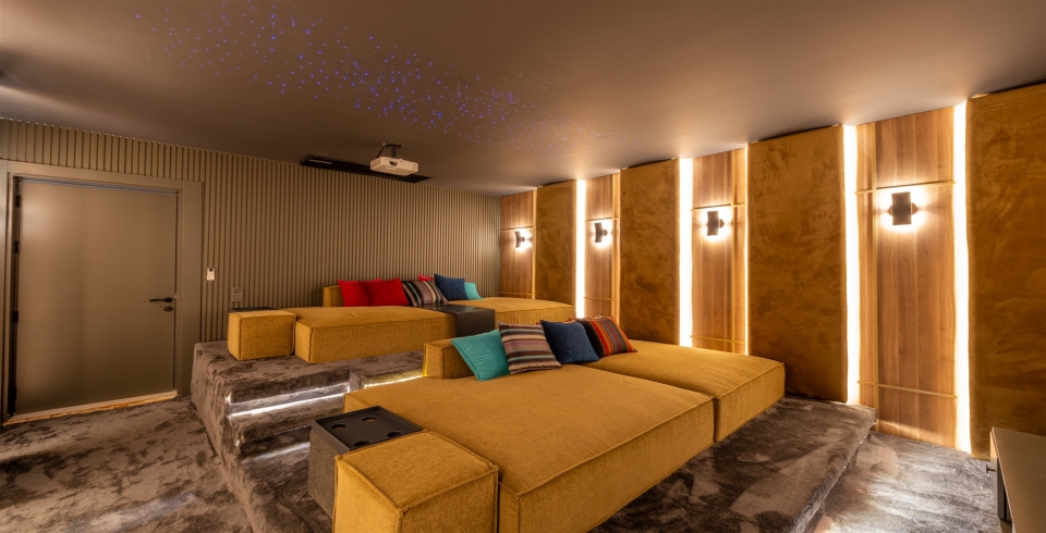Bu lüks villamızın özellikleri say say bitmiyor, zemin katında film severler için geniş bir sinema odası, tatilde bile sporundan ödün vermeyenler için spor aletleri, tatilin keyfini hem yaz hem kış aylarında çıkaranlar için sauna ve kapalı ısıtmalı havuz bulunmaktadır.