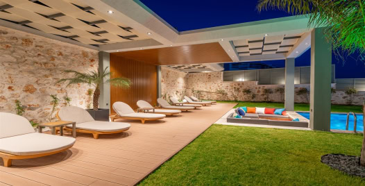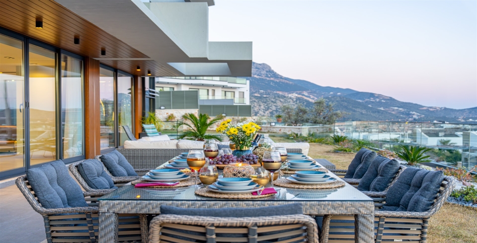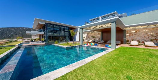 Villamızın tasarımında özel peyzaj ve iç mimarlar ile çalışılmış olup siz değerli misafirlerimizin en konforlu bir şekilde tatilinizi geçirmesi için her detay düşünülmüştür. Villamız geniş bir bahçe alanına sahiptir bu alan içerisinde yetişkinler için özel yüzme havuzu, çocuklar için çocuk yüzme havuzu mevcuttur, kaliteli ve modern eşyalarla donatılmış olan bu villamızın bahçe alalında yine yemek masası, oturma grupları ve barbekü bulunmaktadır, villamızın havuzunun yanındaki oturma alanında akşamları keyifli sohbetler eşliğinde güzel bir gece geçirebilirsiniz.