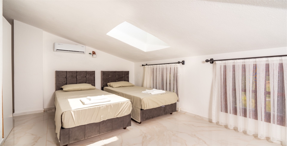 3. Yatak Odası : 2 adet tek kişilik yatak, klima, komodin, elbise dolabı, banyo ve tuvalet bulunmaktadır.