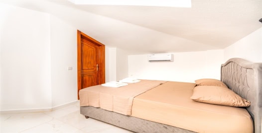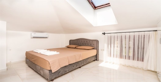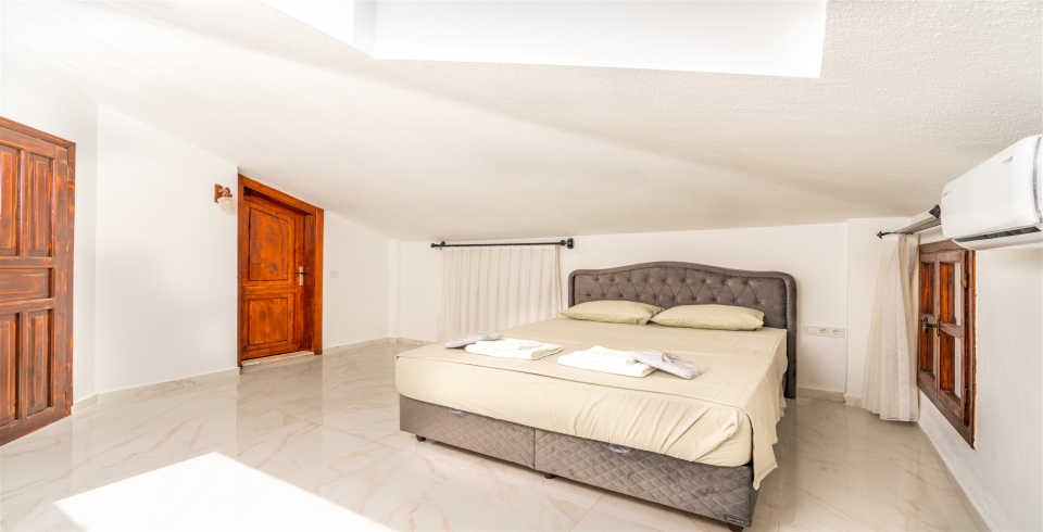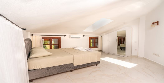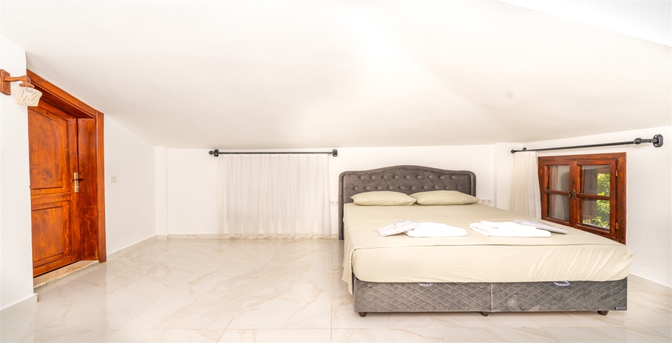 2. Yatak Odası : 1 adet çift kişilik yatak, klima, komodin, elbise dolabı, banyo ve tuvalet bulunmaktadır.