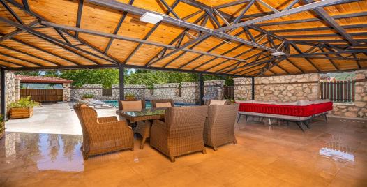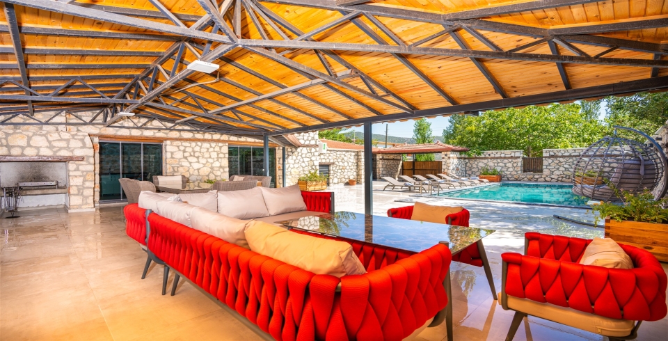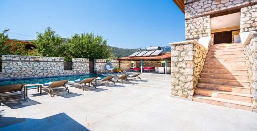 Villa Şah Bezirgan, Kalkan'ın Bezirgan Köyü’nde bulunmaktadır. 3 yatak odası ile 6 kişiye kadar konaklama imkanı sunan villamız, şehrin gürültüsünden ve hava kirliliğinden uzaklaşmak isteyen misafirlerimiz için oldukça ideal bir villadır. Muhafazakar villalar ve jakuzili villalar kategorisinde yer alan villamızın güzel bir bahçesi ve havuz terası vardır. Havuzu korunaklı ve bahçesi dışarıdan görünmeyen Villa Şah Bezirgan'da, barbekü, jakuzi, hamam, sauna ve kapalı ısıtmalı havuzu gibi tatil keyfinizi tamamlayıcı özellikler de bulunmaktadır.