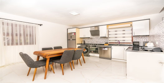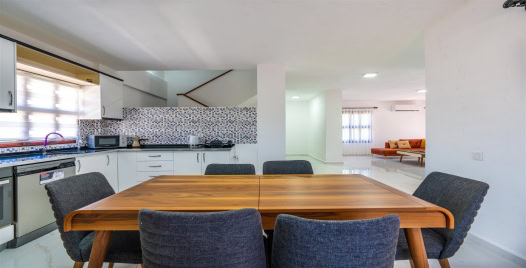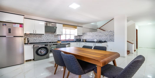 Mutfak : Buzdolabı, bulaşık makinası, fırın, ocak, mikrodalga fırın, tost makinası, yemek masası, kahve makinası, yemek masası, yemek takımları, çatal ve bıçak takımları, tencere ve tava takımları, bardaklar bulunmaktadır.