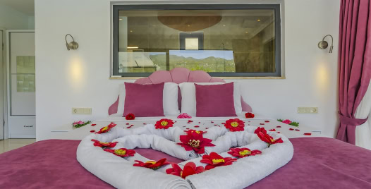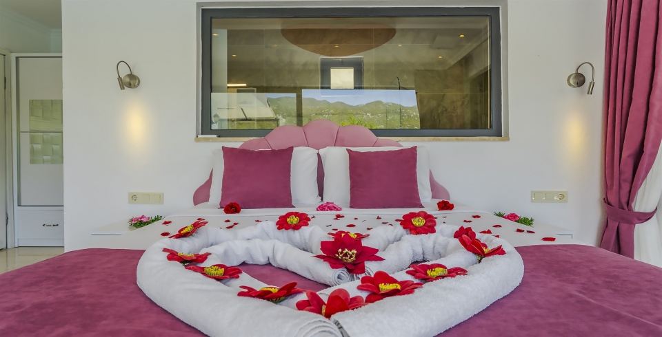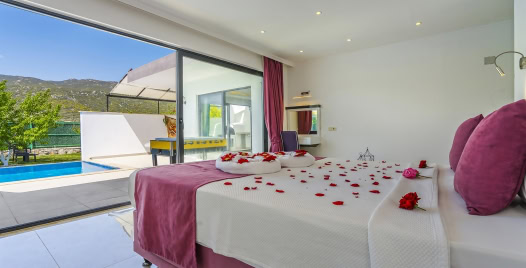 Yatak Odası : 1 adet çift kişilik yatak, kapalı havuz, klima, komodin, elbise dolabı, makyaj masası, banyo ve lavabo bulunmaktadır.