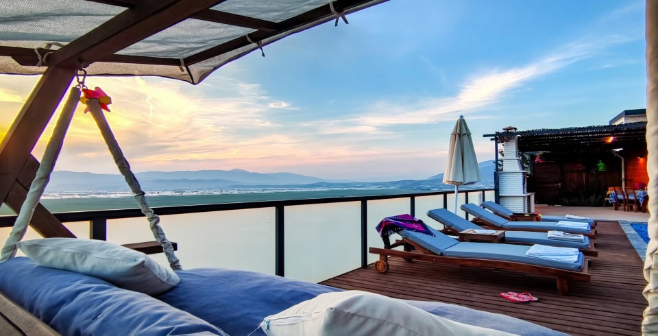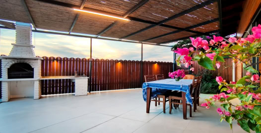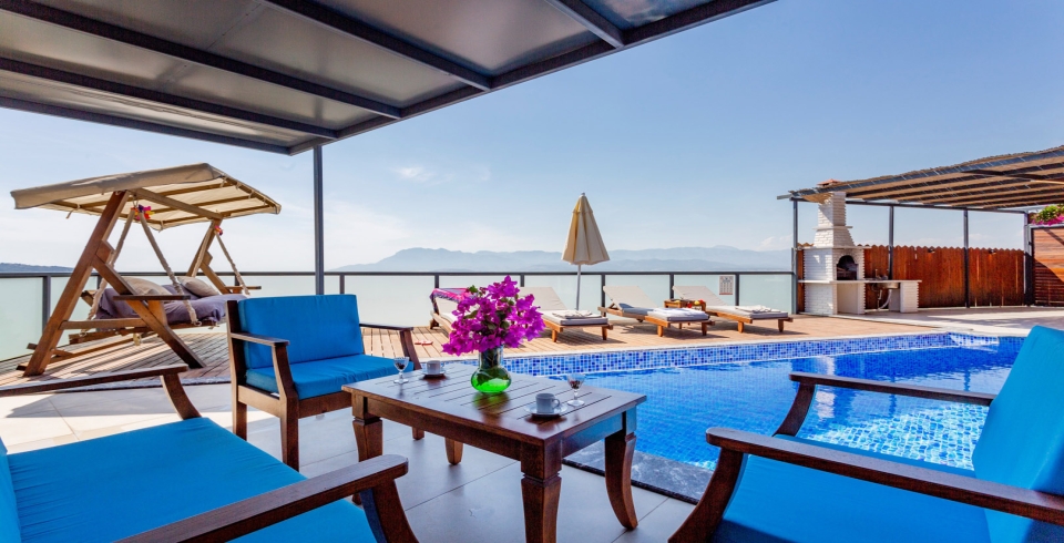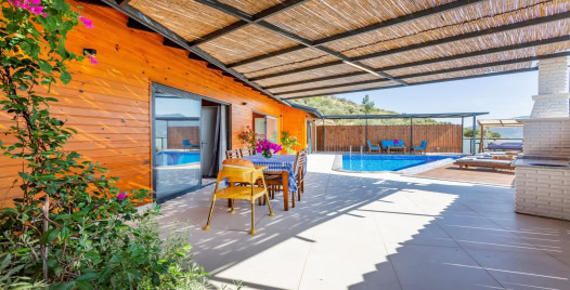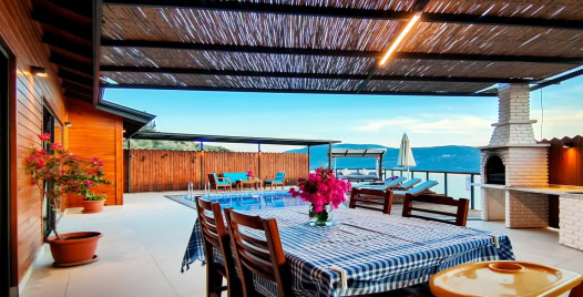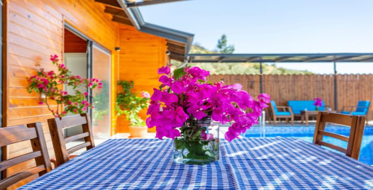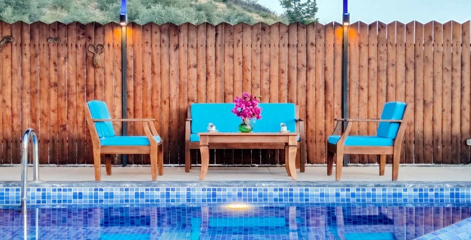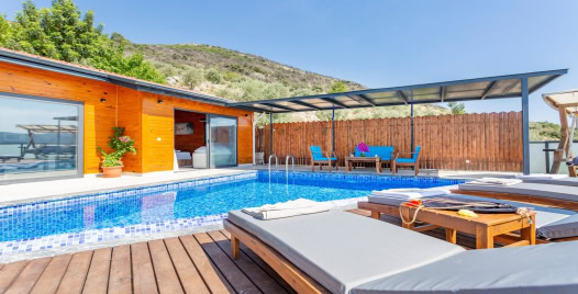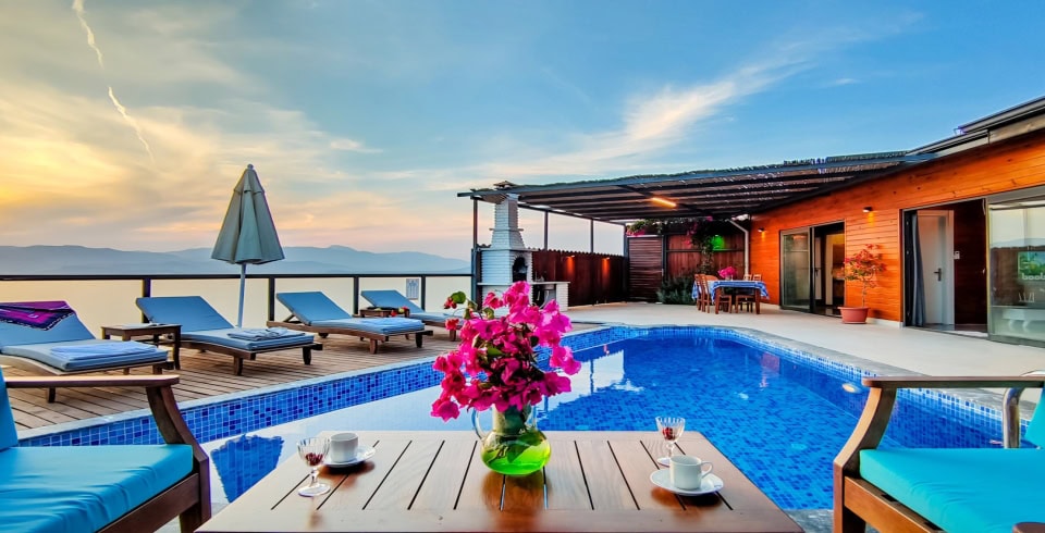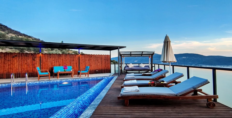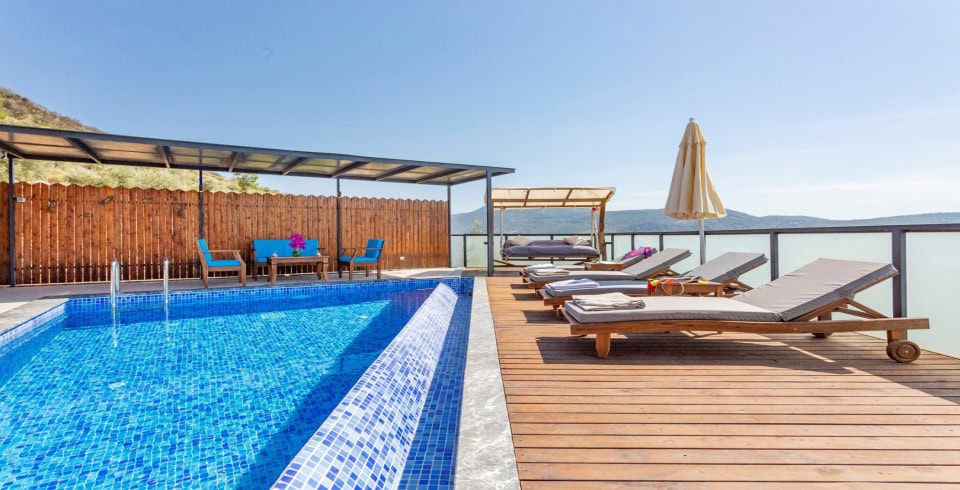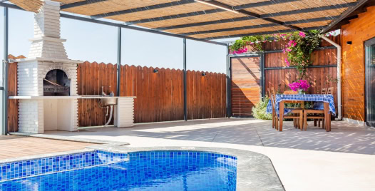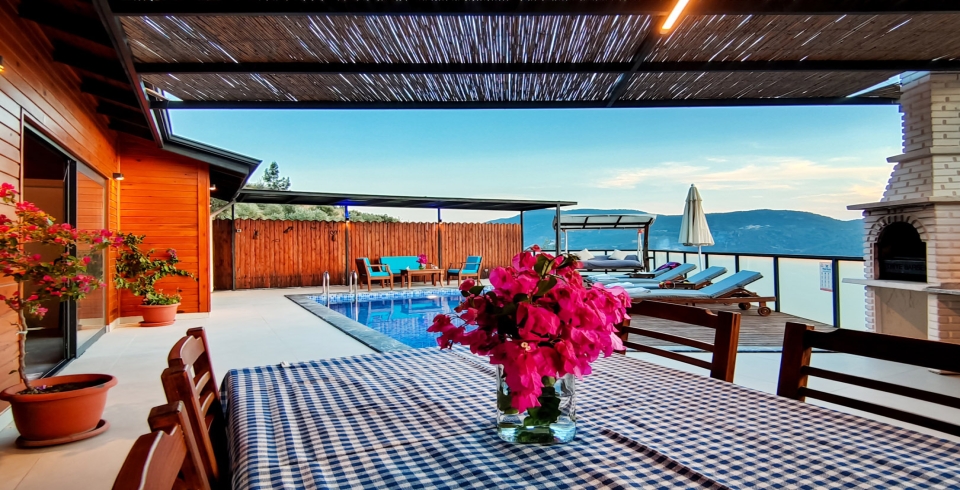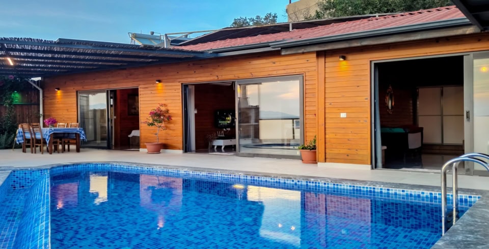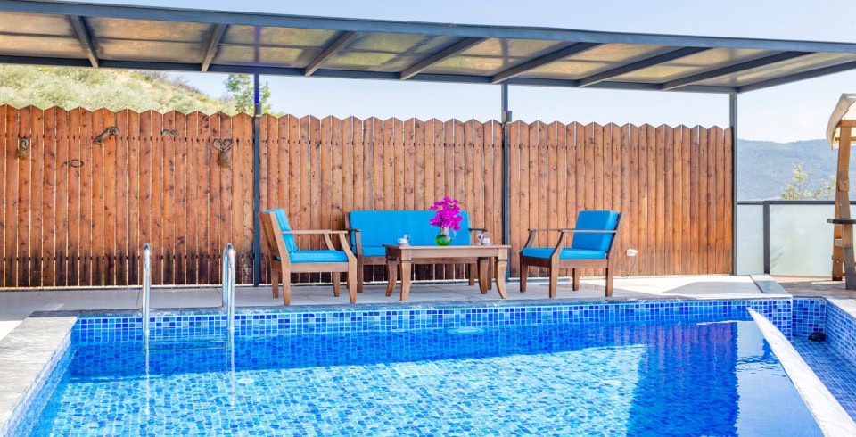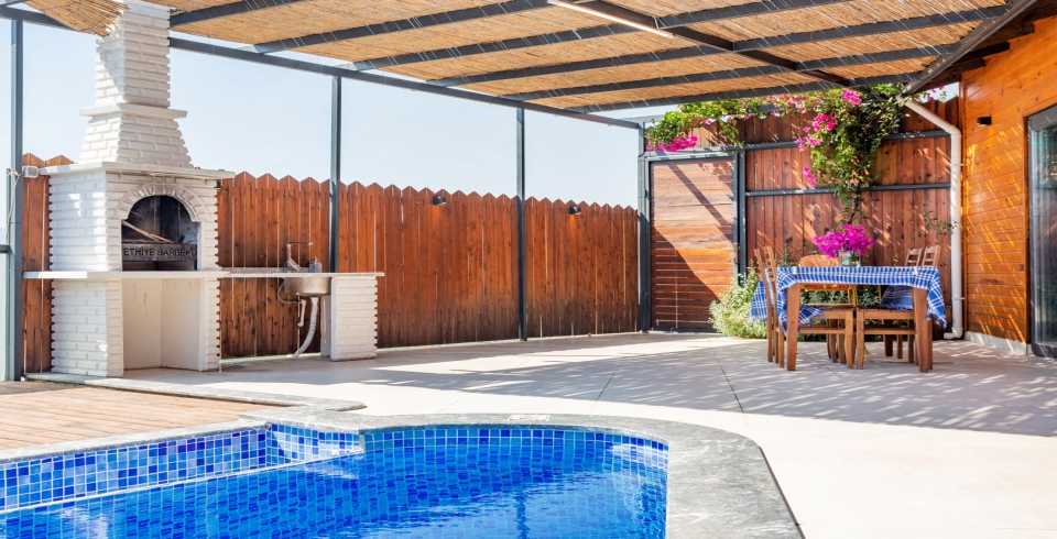 Dış mekânda tamamen korunaklı özel havuz alanı misafirlerine tam mahremiyet sunar. Havuz terasında şezlonglar, güneşlenme alanı, yemek masası ve barbekü alanı bulunur. Özellikle muhafazakâr aileler için özenle tasarlanan bu alan, dışarıdan görünmeyecek şekilde planlanmıştır. Akşam saatlerinde doğanın sessizliği eşliğinde barbekü keyfi yapmak, tatilin en güzel anlarından biri olacaktır.