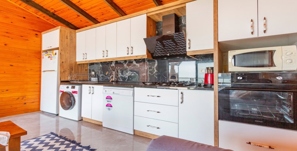 Mutfak: Villamızın mutfağında buzdolabı bulaşık makinası, çamaşır makinası, 4'lü ocak, kettle, mikrodalga fırın, filtre kahve makinası yemek takımı bulunmaktadır.