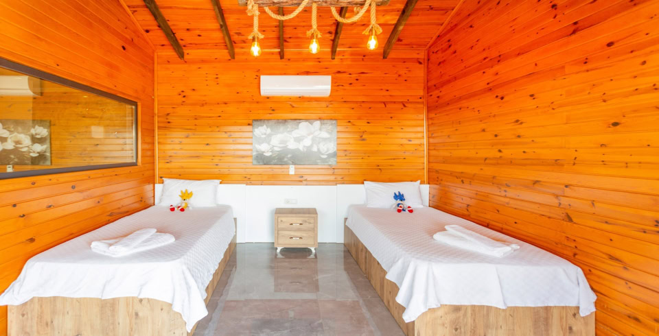 Villada iki adet yatak odası bulunmaktadır. Ana yatak odası geniş bir çift kişilik yatağa ve büyük bir jakuziye sahiptir. Günün yorgunluğunu jakuzide atabilir, sessizlik içinde dinlenmenin keyfini çıkarabilirsiniz. Diğer yatak odasında ise iki tek kişilik yatak bulunur ve çocuklu aileler için oldukça uygundur. Her iki odada da klima ve özel banyo yer almaktadır.