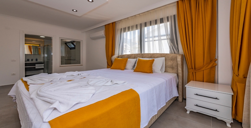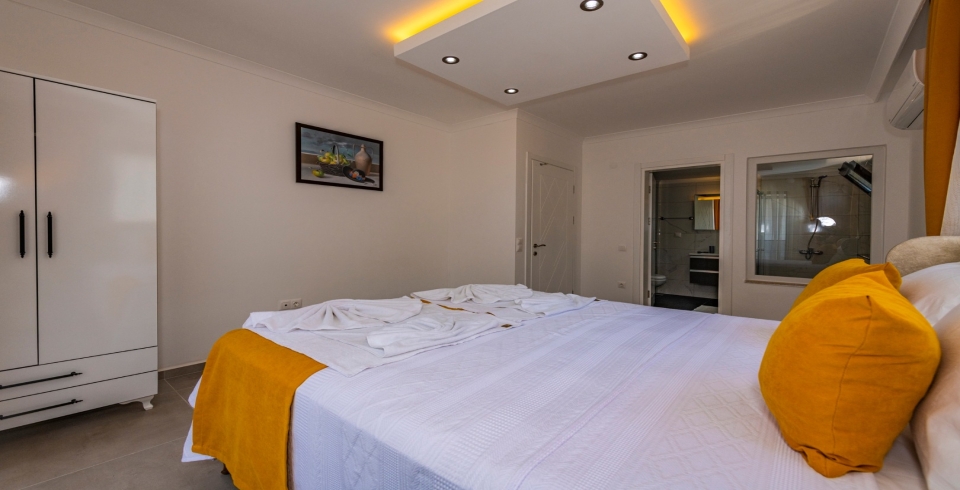 1.Yatak Odası: Çift kişilik yatak, Komodin, Klima, Elbise dolabı, makyaj masası, Banyo ve tuvalet bulunmaktadır.