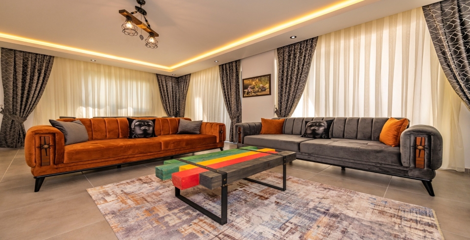 Salon: Oturma grubu, Uydu TV, 8 Kişilik yemek masası, Klima,WC, Havuz terasına çıkış bulunmaktadır.