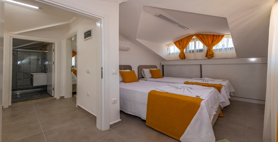 3.Yatak Odası: 2 tek kişilik yatak, Komodin, Klima, Elbise dolabı,banyo ve tuvalet bulunmaktadır.