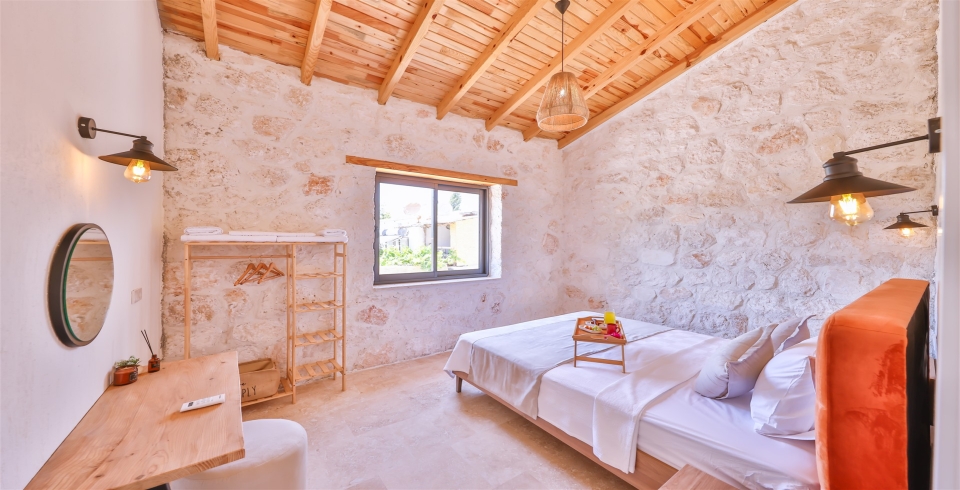 1. Yatak Odası : 1 Çift Kişilik Yatak, Klima, Komodin, Makyaj Masası, jakuzi, banyo ve tuvalet bulunmaktadır.