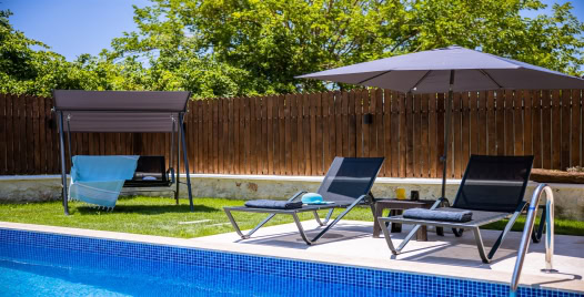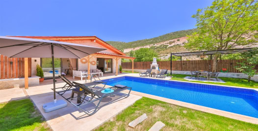 Havuz : Havuz terası korunaklı olup dış taraftan gözükmemektedir. Villamızın havuz terasında şezlong , şemsiye, salıncak ve oturma grubu bulunmaktadır.