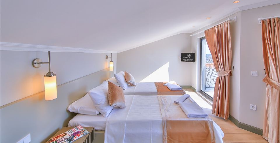 Yatak Odası 3 : 2 tek kişilik yatak, tuvalet, banyo, TV, klima