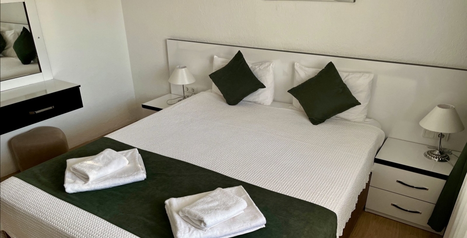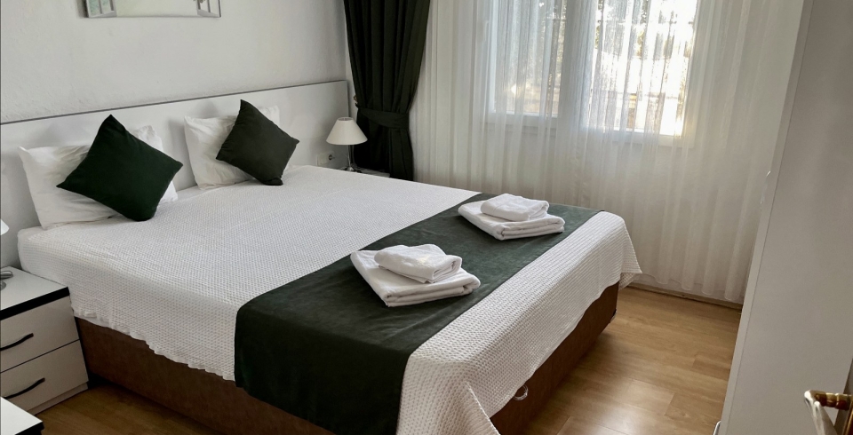 2. Yatak Odası : 1 adet çift kişilik yatak, klima, elbise dolabı, makyaj masası, banyo ve tuvalet ortak kullanımdır.