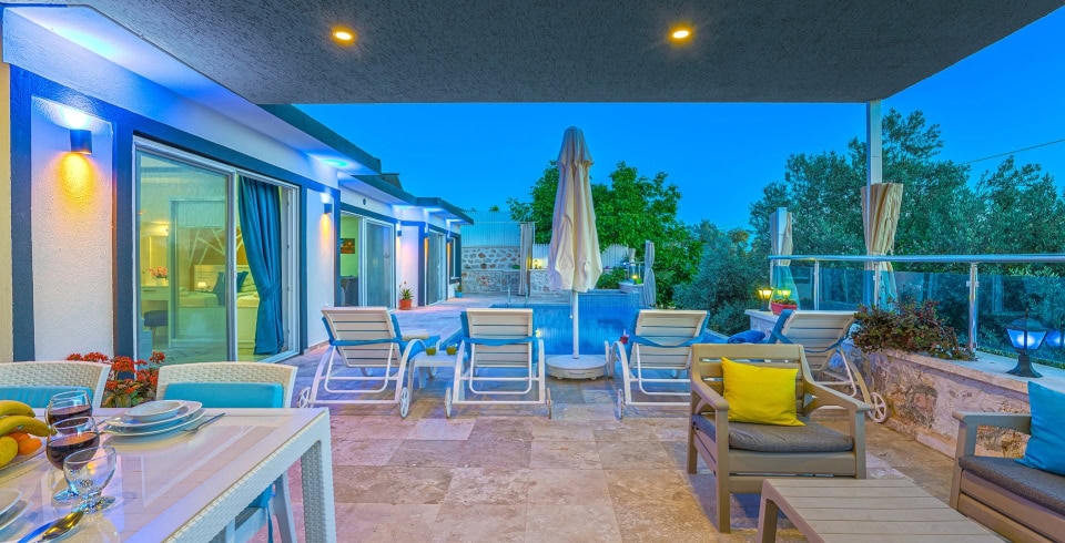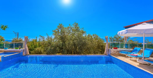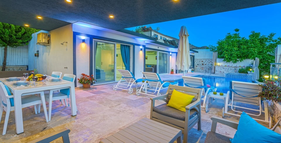 Kalkan’ın doğayla iç içe, sakin ve huzurlu bölgesi Üzümlü’de yer alan Villa Samyeli Üzümlü, gözlerden uzak, konforlu ve lüks bir tatil deneyimi sunuyor. 2 yatak odası ve 4 kişilik kapasitesi, modern ve şık tasarımıyla çiftler ve küçük aileler için mükemmel bir konaklama seçeneği sunuyor. Tam korunaklı özel havuzu, muhafazakar misafirler için mahremiyet sağlarken, çocuk havuzu, minik misafirlerin güvenli ve keyifli vakit geçirmesi için özel olarak tasarlandı. Jakuzisi, günün yorgunluğunu atarak rahatlamanızı sağlarken, doğa manzarası eşliğinde huzurlu bir atmosfer sunuyor.