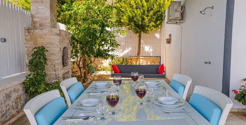 Villanın kompakt ve kullanışlı bahçesi, doğanın içinde dinlenmek ve keyifli anlar yaşamak için ideal bir alan sunarken, Kalkan’ın merkezine kısa sürüş mesafesiyle restoranlara, kafelere ve alışveriş noktalarına kolay ulaşım imkânı sağlıyor. Sessiz, huzurlu ve konforlu bir tatil için Villa Samyeli Üzümlü sizi bekliyor!