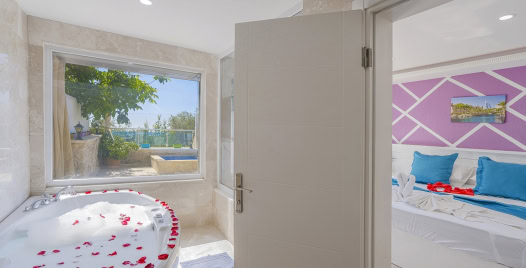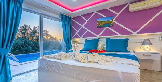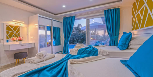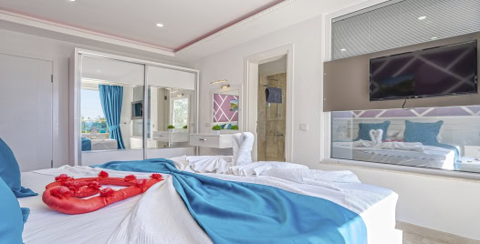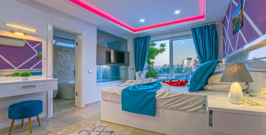 1. Yatak Odası : 1 adet çift kişilik yatak,jakuzi, klima, komodin, makyaj masası, banyo ve lavabo bulunmaktadır.