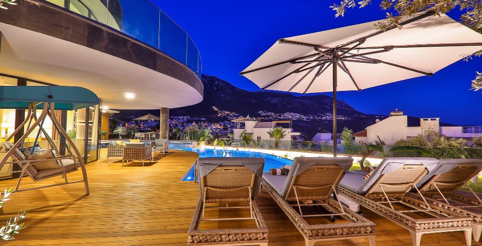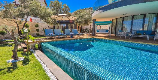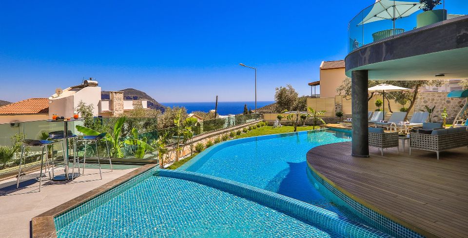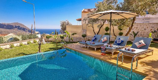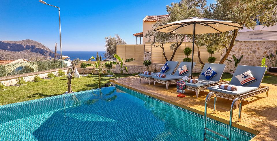 Villa Sandie, Kalkan Kalamar bölgesinde yer almaktadır. 4 yatak odası olan tatil villamız 8 kişilik konaklama kapasitesine sahiptir. Deniz manzaralı konuma sahip olan tatil villamızda jakuzi, hamam ve sauna bulunmaktadır. Geniş ve oldukça konforlu havuz alanı özenle dekore edilmiş odaları ile sizlere unutamayacağınız bir villa tatili sunmaktadır.