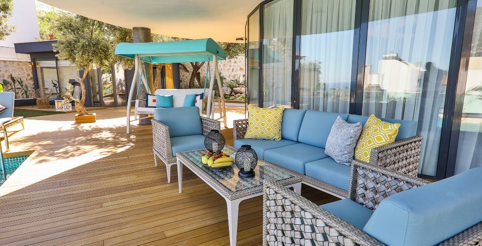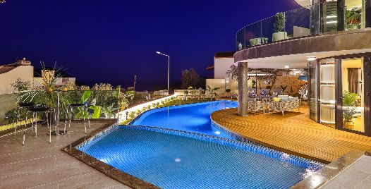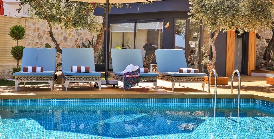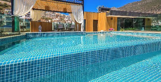 Teras Havuz 1 : 4 x 3,5 metre genişliğinde, derinliği 70 cm olan deniz manzaralı havuz teras katında bulunmaktadır. Aynı zamanda jakuzi özelliği bulunmaktadır. Havuz terasında özenle dekore edilmiş oturma alanları ve bar alanı bulunmaktadır.