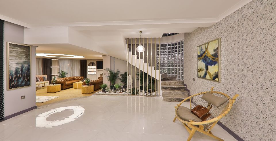 Havuz ve Bahçe: Geniş bahçe içerisinde özel yüzme havuzu, şezlong, şemsiye, salıncak, masa tenisi yemek masası ve barbekü bulunmaktadır.
