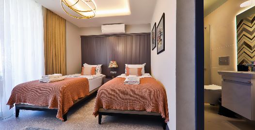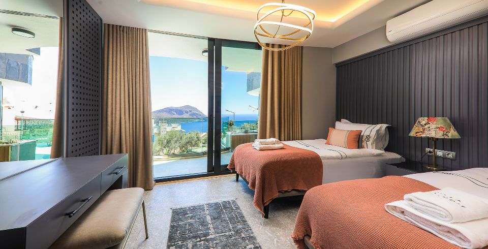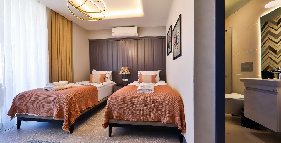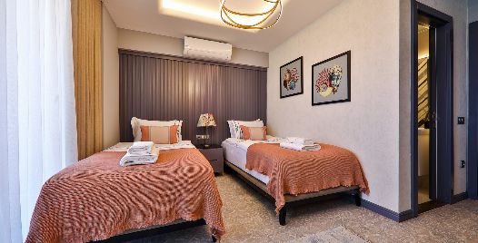 3. Yatak Odası: Birinci katta bulunan en-süit yatak odasında 2 adet tek kişilik yatak, makyaj masası, klima, elbise dolabı, komodin, balkon ve banyo bulunmaktadır.