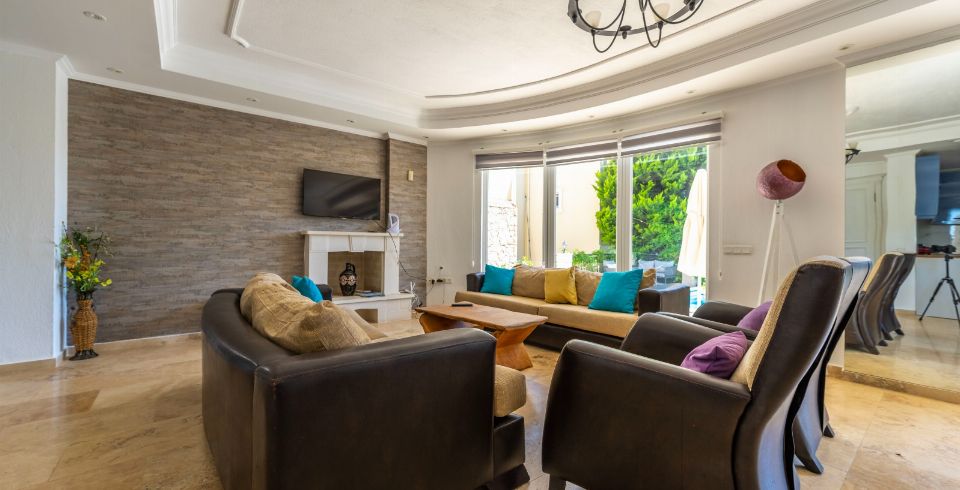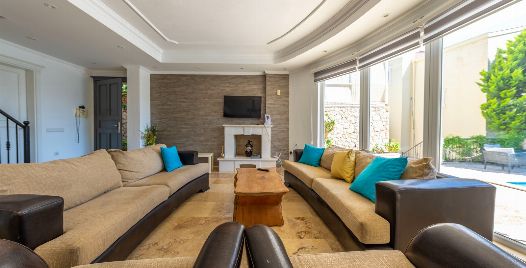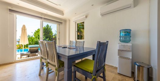 Salon : Salon kısmımızdan havuz terasına çıkış yapılabiliyor olup, birde oturma grubu bulunuyor aynı zamanda, televizyon, uydu alıcı, klima, sehpa bulunuyor.