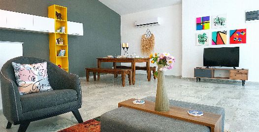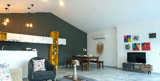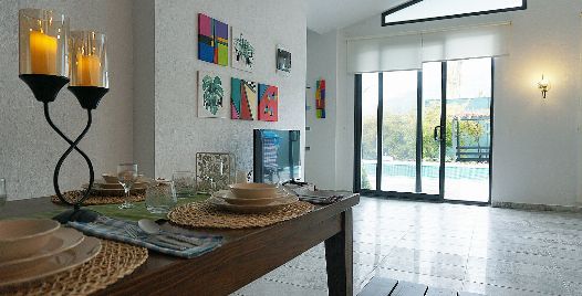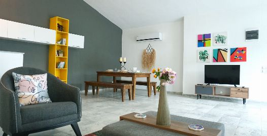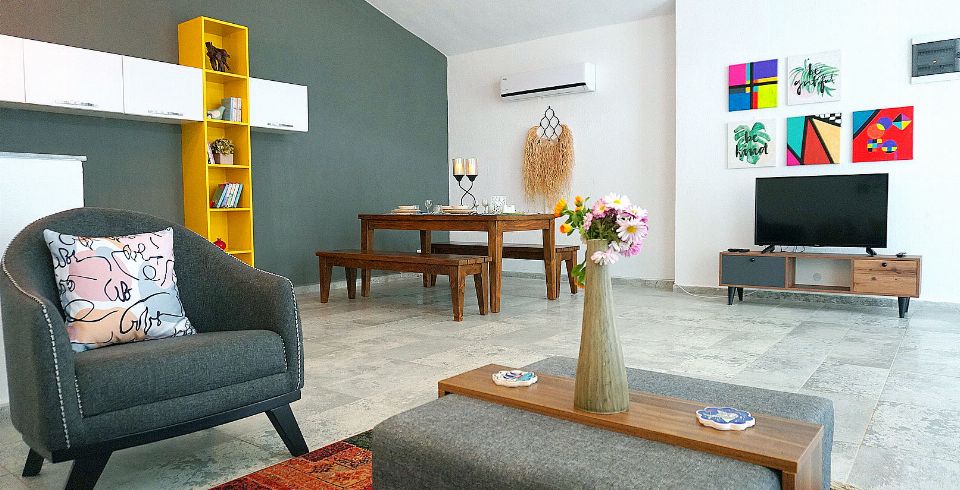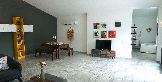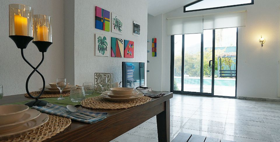 Salon : Salonumuzda klima, televizyon, uydu alıcı, oturma grubu, sehpa bulunmaktadır. Salondan havuz terasına çıkış bulunmaktadır.