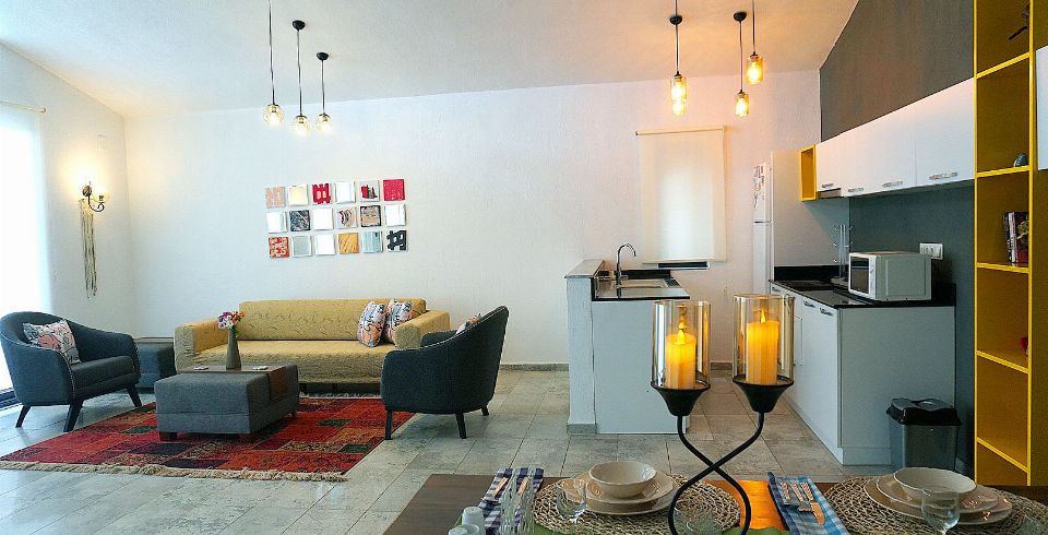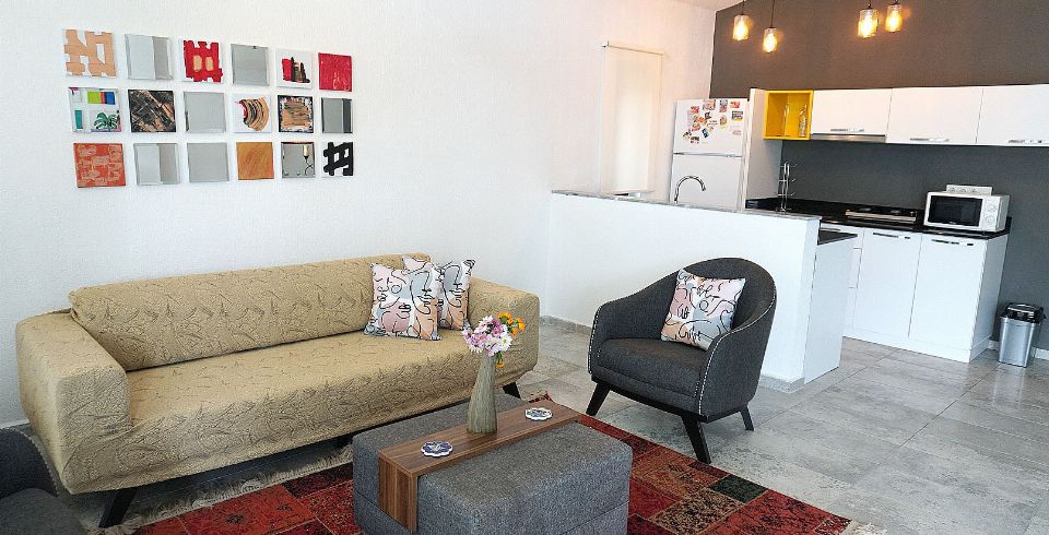 Mutfak : Modern Amerikan mutfakta bulaşık makinası, buzdolabı, çamaşır makinası, 4’lü ocak, fırın, elektrikli su ısıtıcı, tencere ve tavalar, 2 kişilik yemek takımı, çatal ve bıçak takımı, çay, kahve, su bardakları bulunmaktadır.