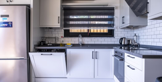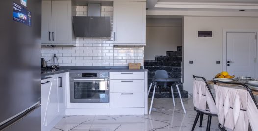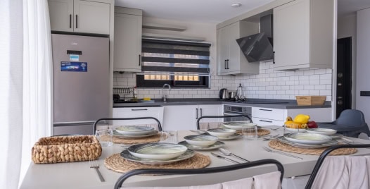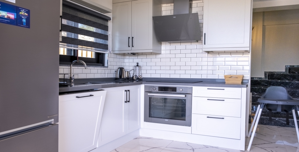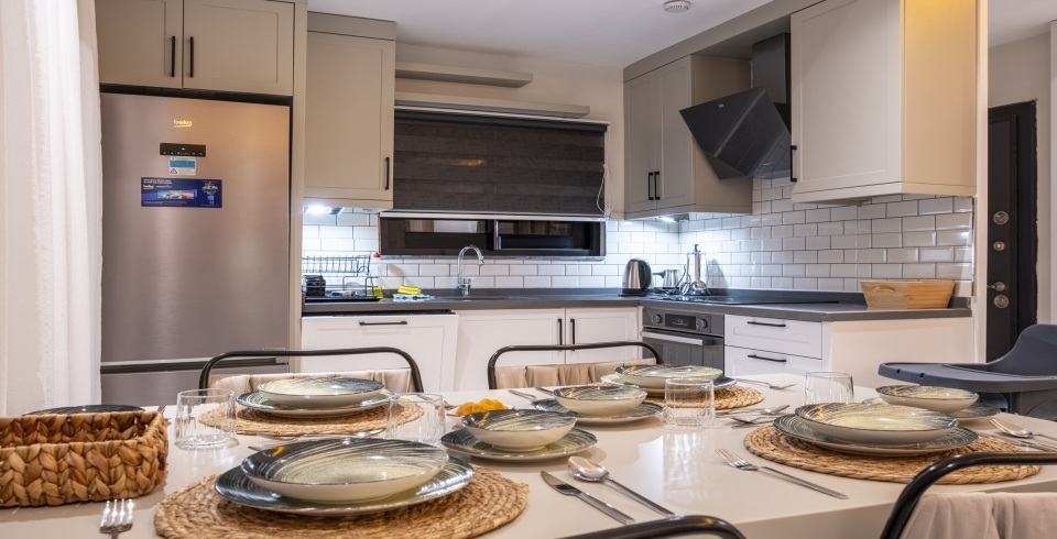 Mutfak: Açık planlı mutfak, 4 kişiye yetecek kadar mutfak malzemeleri, buzdolabı, fırın, ocak, mikrodalga fırın, bulaşık makinesi, çamaşır makinesi, tost makinesi, kettle ve çaydanlık bulunmaktadır..