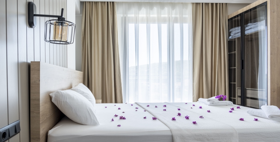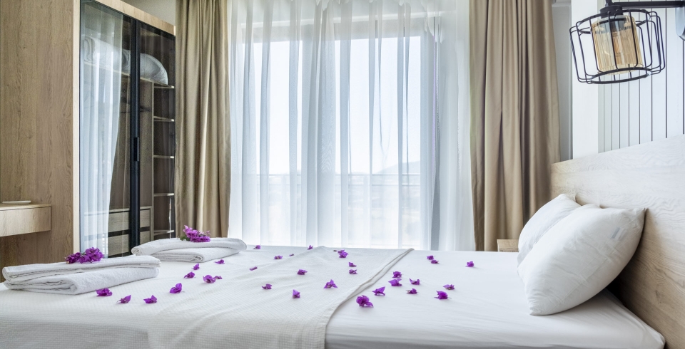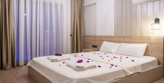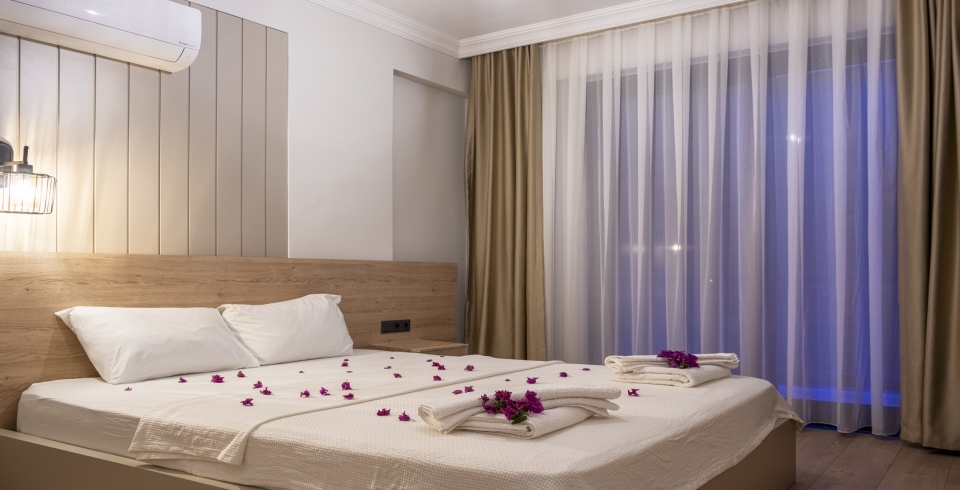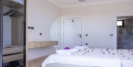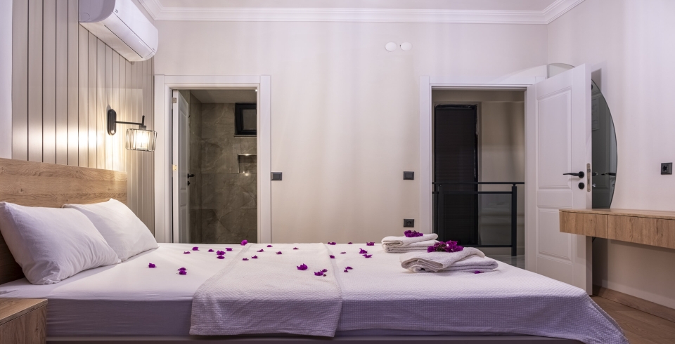 2.Yatak Odası: 1 adet çift kişilik yatak, elbise dolabı, komodin, klima, makyaj masası, banyo ve lavabo bulunmaktadır.