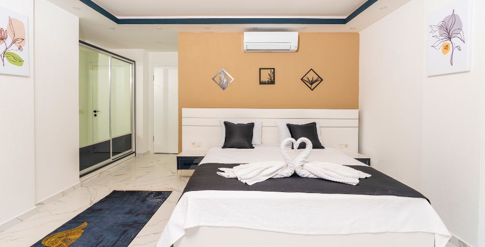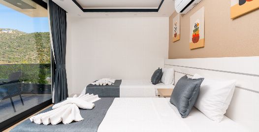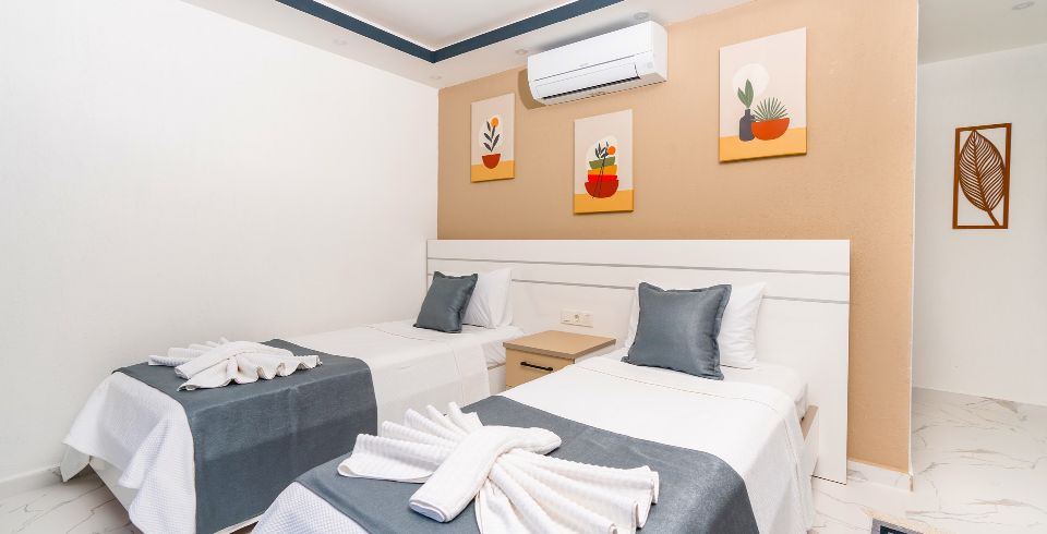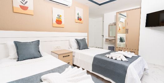 2. Yatak Odası : 2 adet tek kişilik yatak, komodin, klima, makyaj masası, banyo ve lavabo bulunmaktadır.