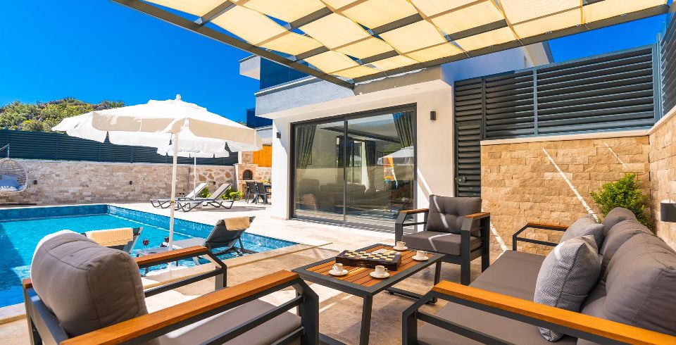 Havuz ve Bahçe : Villamızın bahçesinde özel yüzme havuzu, güneşlenmeniz için şezlong, salıncak, güneşlenme terası, masa, oturma grubu, mangal keyfiniz için barbekü, güneş şemsiyesi bulunmaktadır.