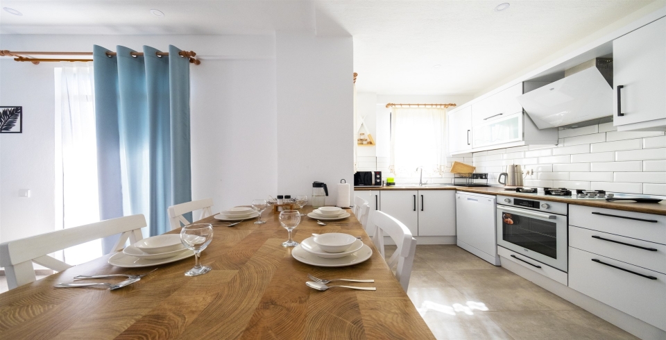 Mutfak : Villamızın geniş Amerikan mutfağı ile sizlere kendi evinizin mutfağı gibi hissettirecek. Ayrıca mutfakta klima, bulaşık makinası, buzdolabı, çamaşır makinası, mikrodalga fırın, su ısıtıcısı, fırın, 4'lü ocak seti ve 4 kişilik geniş yemek masası ile tava tencere vb. mutfak araç gereçlerini kullanma fırsatını sizlere sunuyoruz.