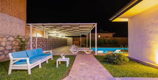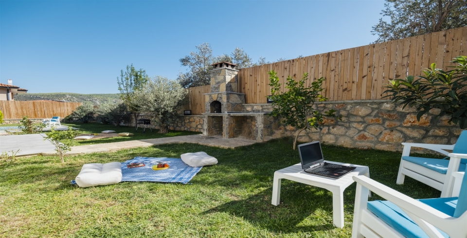 Bahçe : Villamızın bahçesinde özel yüzme havuzu, güneşlenmeniz için 4 adet şezlong, güneşlenme terası, oturma grubu, mangal keyfiniz için barbekü, bulunmaktadır.