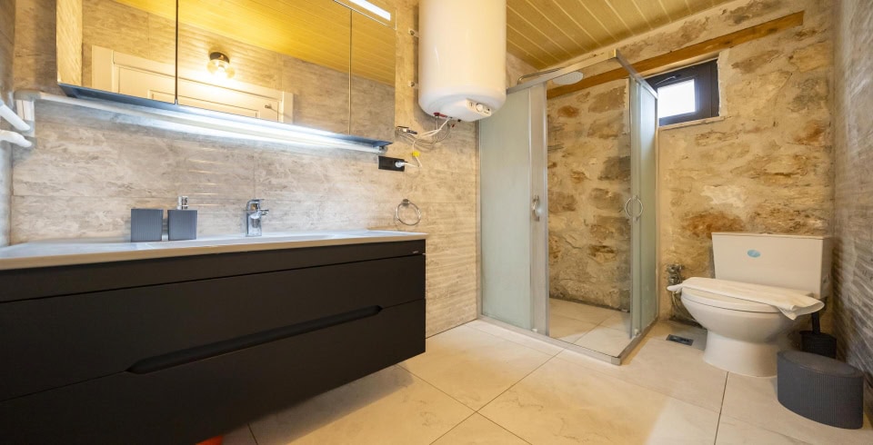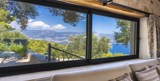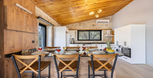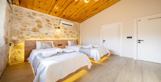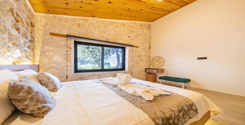 Zeytin ağaçlarının arasında, özenle tasarlanmış taş mimarisi ile doğayla uyumlu bir atmosfer yaratan villa, huzuru ve mahremiyeti ön planda tutuyor. Denize yürüme mesafesinde bulunan özel konumuyla da Muarkürü’nün berrak sularına kolayca ulaşabilirsiniz.